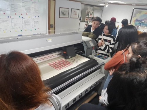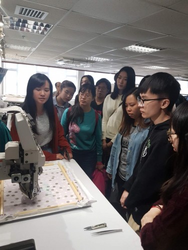 Sophie Leong, Lecturer of Arts in Design Programmer of City University of Macau, visited The Macau Productivity and Technology Transfer Centre together with students of fiber art on 8 November. The delegation appreciated the warm hospitality given by the Centre manager Nichole and her co-workers. In this visit, they discussed about practical experience of creative design techniques in depth. Through the explanation from tutors in the centre for different equipment, students have a better understanding for different creative techniques. Digital fabric printing, laser fabric cutting, embroidery machines attracted great interest and attention of students and tutors. Students also saw with their own eyes how their own scarft design printed with digital fabric printing machine. This experience-sharing made students learned a lot from this visit.