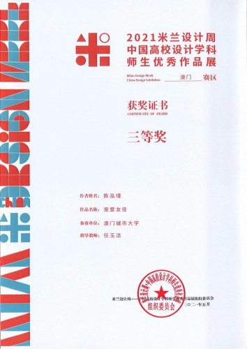 In the 5th Milan Design Week -- Excellent Works Exhibition of Design Disciplines of Chinese Colleges and Universities under the guidance of Chinese Higher Education Association, Jiao Bin and Liang Xinyin, under the guidance of Assistant Professor Ren Yujie from School of Innovation and Design, City University of Macau, won the first prize and Chen Hongjin the third prize in the Macau competition. Sun Binbin and Ren Yujie's paper "Research on China's HPV Vaccination Service APP Design from the Perspective of Service Design" was selected into the collection of papers.