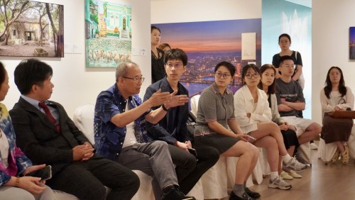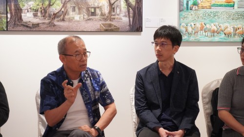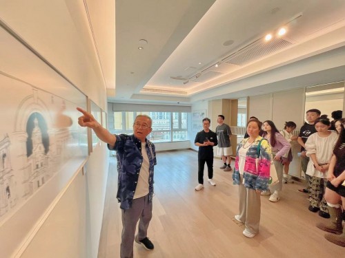 Local artists Lin Zien and Wu Weijian elaborately explained the creative process and underlying meanings of each artwork to the faculty and students. At a macro level, the artists presented unique perspectives and reflections on Macao and the world through the imagery and profound themes of their works. By skillfully integrating elements of Macao's historical transformations, humanistic features, and natural landscapes into their paintings, they delved deep into Macao's historical and cultural explorations while reflecting thoughtfully on contemporary social phenomena. These works not only showcased the artists' exquisite skills but also deeply reflected the unique charm and cultural heritage of Macao as a city. Through their individual styles and languages, they collectively weaved a vibrant tapestry of contemporary Macao art. On a micro level, the artists focused on detailed portrayals and emotional expressions, using delicate brushstrokes and vivid colors to capture the nuances of life and imbue ordinary objects with extraordinary meanings. Finally, the artists engaged in lively exchanges with the students present, sharing their creative experiences and offering valuable advice and guidance, encouraging students to dare to experiment and innovate. They emphasized the close connection between art and life, viewing art as a means to reflect life and express emotions, asserting that only by immersing oneself in life and understanding it can one create truly lively artistic works.