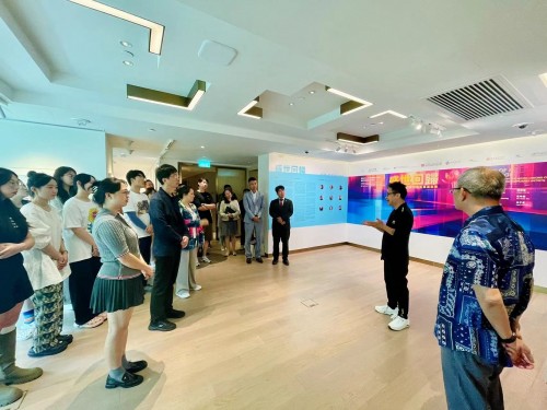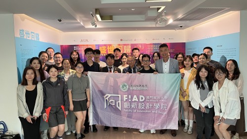 On September 24, 2024, 16 doctoral students from Macao City University's Faculty of Innovation and Design, led by our Deputy Dean Po-Hsun WANG and Associate Professor Liu Haiping, visited the "Echoes of a Golden Age: Macro Events through the Micro Visions of Macao's Legendary Contemporary Artists" exhibition. The exhibition aimed to celebrate the 75th anniversary of the founding of the People's Republic of China and the 25th anniversary of Macao's return to the motherland. Sands China invited nine outstanding Macao artists to present the exhibition, showcasing Macao's unique cultural charm and commemorating the historical aspect of the "Golden Age Return." Some exhibits included published representative philatelic items along with their original works, displaying the patriotic sentiments of local artists.