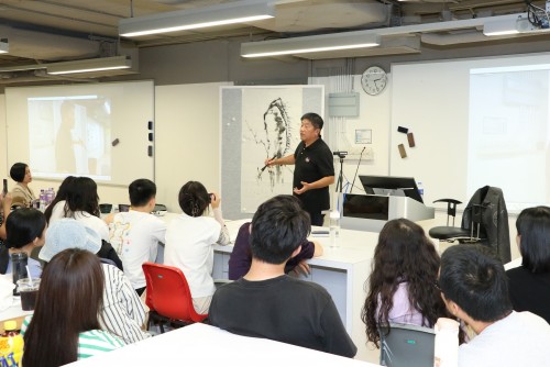 In order to give students a more intuitive understanding of the creation process of artworks and a hands-on art experience that combines theory and practice,On October 9, 2024, 40 art graduate and postgraduate students from the Faculty of Innovative and Design at the City University of Macau, listened and watched the Xinlin Ma's lecture on flower and bird painting creation. The lecture was delivered by Professor Xinlin Ma, with Associate Professor Wang Ziwei serving as the academic host. Professor Ma is Professor and doctoral supervisor at the Faculty of Innovative and Design at the City University of Macau, special researcher for the State Council Consultation Service, a special researcher for the Central Institute of History and Literature of the State Council, the group leader of the appraisal expert group for modern and contemporary art collections at the National Museum of China, the vice president of the China Calligraphy and Painting Collectors Association.