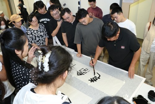 At the same time, he encouraged students to be bold in trying new creative techniques and styles, continuously exploring their own artistic paths, allowing everyone to experience the essence of " Spirit of the form" in Chinese painting. At the end of the lecture, Professor Xinlin Ma demonstrated calligraphy works in two different fonts on site for the students of the college. Whether it's the intensity of the strokes or the structure and layout of the characters, every detail demonstrates his profound understanding of calligraphy art. This lecture provided students with a deep understanding of the creative process of a flower and bird painting and the unique aesthetic system behind it. It deepened their understanding of the cultural heritage of Chinese painting and promoted the academic atmosphere within the college. It was a valuable opportunity for academic exchange between teachers and students in our college.