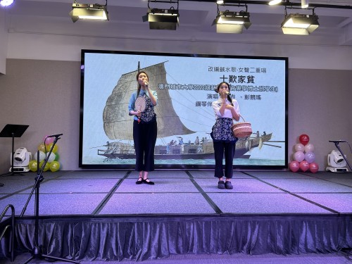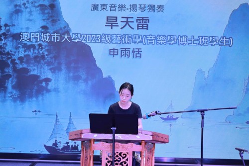 The gala featured diverse performances, with the Musicology doctoral program contributing two exceptional pieces: the female duet "Shi Tan Jia Pin (Ten Laments of Poverty)" and the Yangqin solo "Han Tian Lei (Thunder in Drought)". The duet, originally adapted from the traditional Xianshui folk song "Ten Laments of Poverty" by 2023 doctoral candidate Wen Hui, premiered at the 2024 "Macau Soundscapes" experimental music concert to significant acclaim. Its recent performance particularly resonated with elderly attendees, who praised its familiar yet artistically refined melody. The Yangqin rendition of the iconic Cantonese musical piece "Thunder in Drought" also received enthusiastic applause.