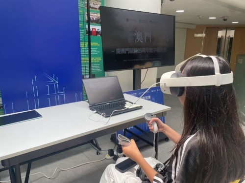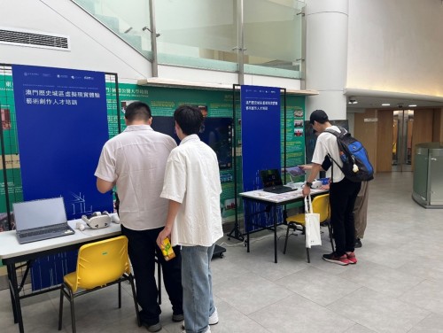 City University of Macau, Faculty of Innovation and Design recently held the Outcomes Exhibition of the "Virtual Reality Art Creation Training for Macau's Historic Centre" project at its Taipa Campus. The exhibition showcased six outstanding works that creatively integrated art with technologies such as Virtual Reality (VR) and Artificial Intelligence (AI). Through themes like traditional festivals, cultural heritage preservation, and tourism experiences, the works vividly presented the multifaceted cultural blend and unique charm of Macau's Historic Centre from all angles.
