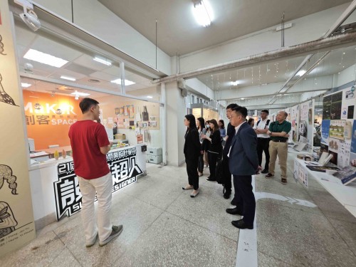 On June 10, the delegation visited Shih Chien University's College of Design, where Chairman Milton Mung-Shiung Shieh and Vice President for International and Cross-Strait Affairs Tony Kuo shared the institution's experience as "Taiwan's Most Internationalized University". Dean Feng-Yu Hsu introduced the college’s industry-academia collaboration model, while department representatives Chair Vick Wang and Assistant Professor Paul Gong highlighted achievements in media communication design and industrial product design, emphasizing the institution's practice-oriented pedagogy. The delegation also toured the College of Design building, exploring interdisciplinary learning spaces in architecture, fashion design, and other disciplines.