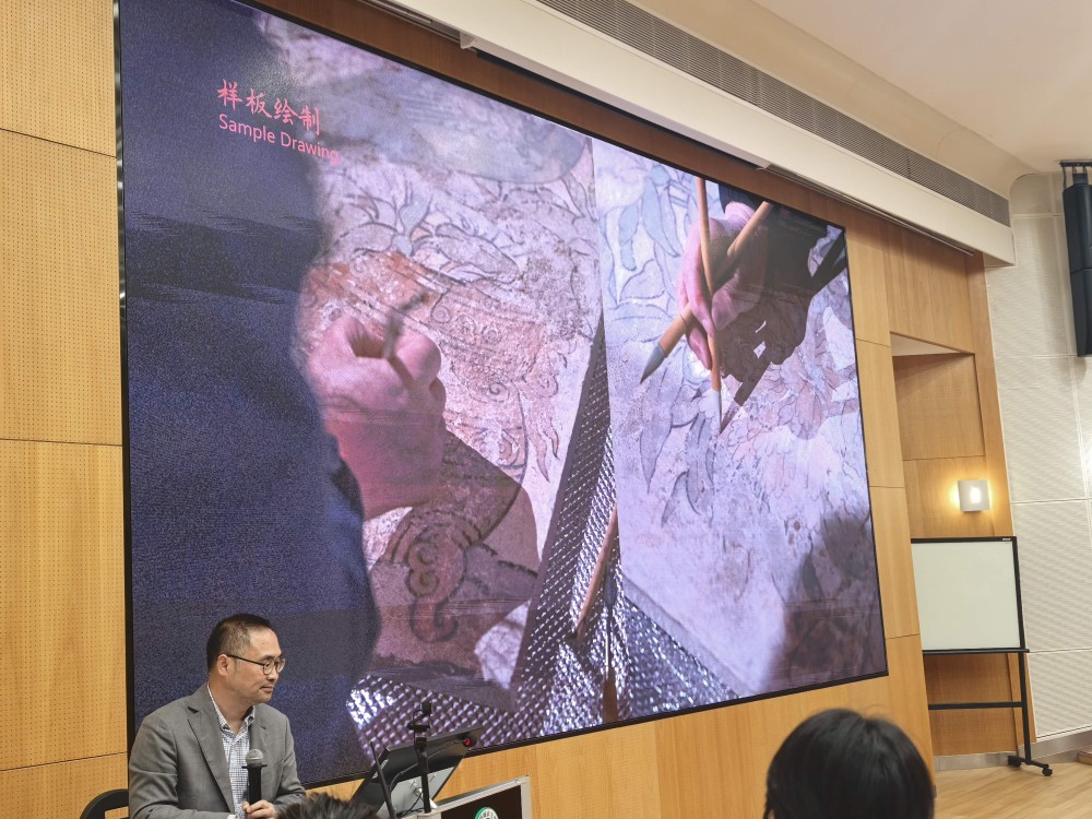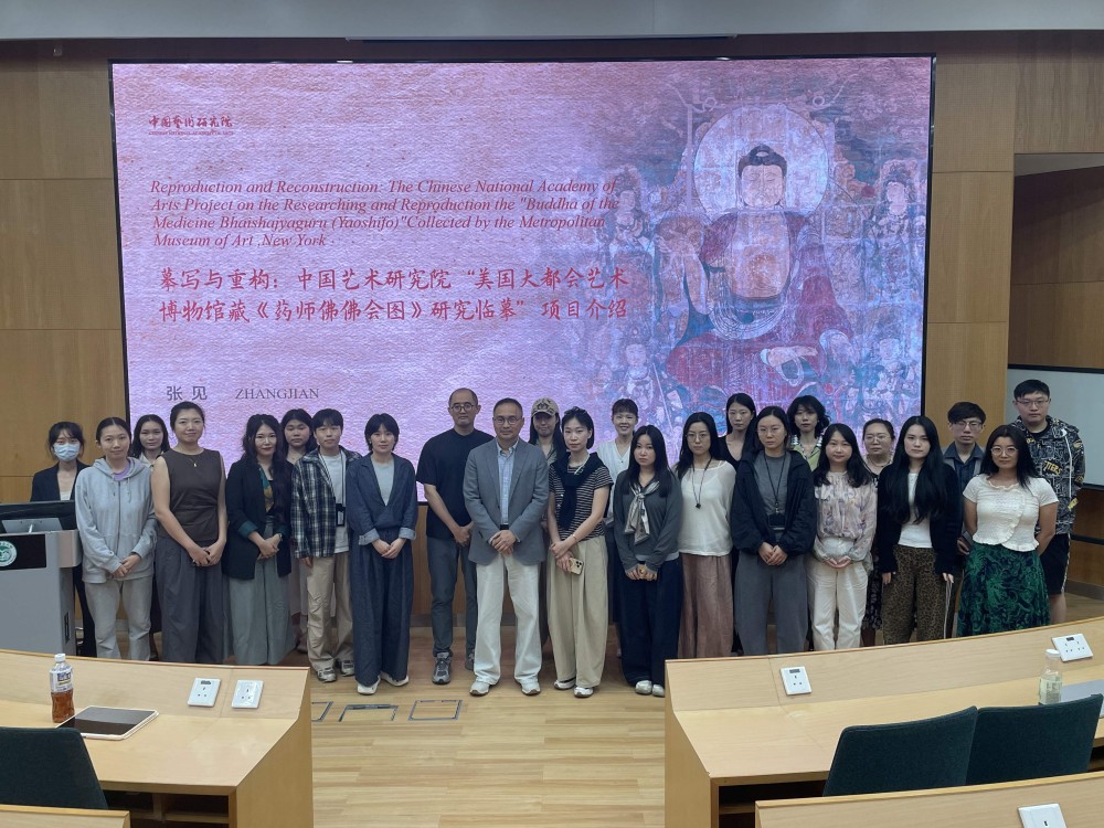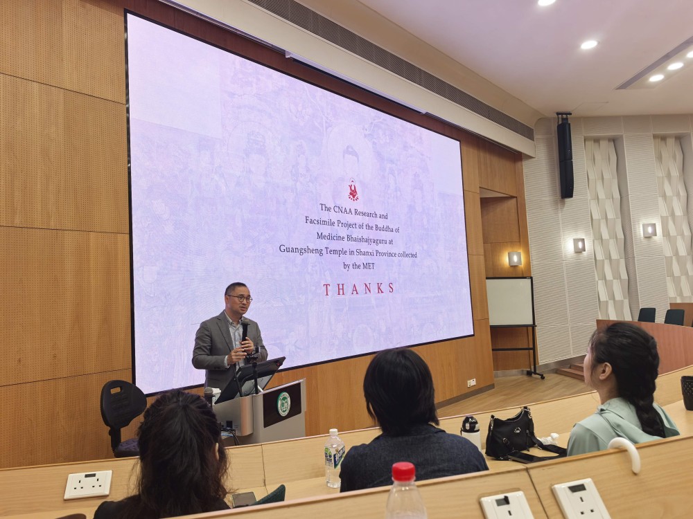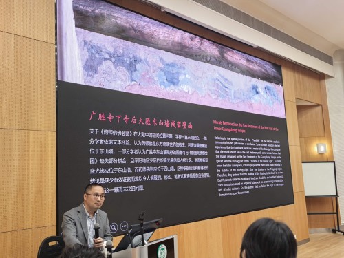 Drawing upon years of experience in mural copying and pictorial research, Professor Zhang systematically introduced the provenance and academic significance of the Medicine Buddha Assembly. Originally part of the mural programme of Guangsheng Temple, the work was cut away and removed from the temple during repairs to the main hall in 1928, subsequently passing through various hands before entering the collection of the Metropolitan Museum of Art in the United States. Professor Zhang noted that, through a combination of methods — including comparison with historical photographs, analysis of the architectural space, and verification of pictorial details — the research team has put forward new conclusions regarding the mural's original placement and identified deviations in earlier restoration efforts, thereby providing important evidence for further research and conservation work.
