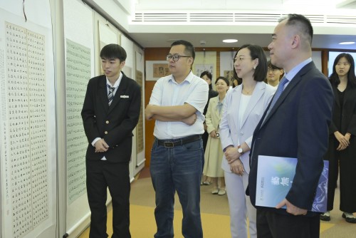 The exhibition presents Chinese calligraphy and painting works by a total of 74 Master of Arts graduates. The exhibited works encompass a broad range of subject matter and demonstrate a diversity of artistic styles, embodying both the students' comprehension of and commitment to the traditional spirit of Chinese brush and ink, and their intellectual engagement and creative experimentation in the pursuit of individual artistic expression. During the inauguration ceremony, Mr. Li Zhe, speaking on behalf of the graduating cohort, reflected upon the collective growth and accomplishments attained by his fellow students throughout two years of dedicated study and artistic practice in Chinese calligraphy and painting. He conveyed profound gratitude for the University's steadfast commitment to their cultivation, the meticulous guidance rendered by faculty members and mentors, and the spirit of mutual encouragement shared among peers. He remarked that “Art Knows No Bounds” serves not merely as the thematic title of the exhibition, but as an enduring exhortation to pursue lifelong artistic advancement.