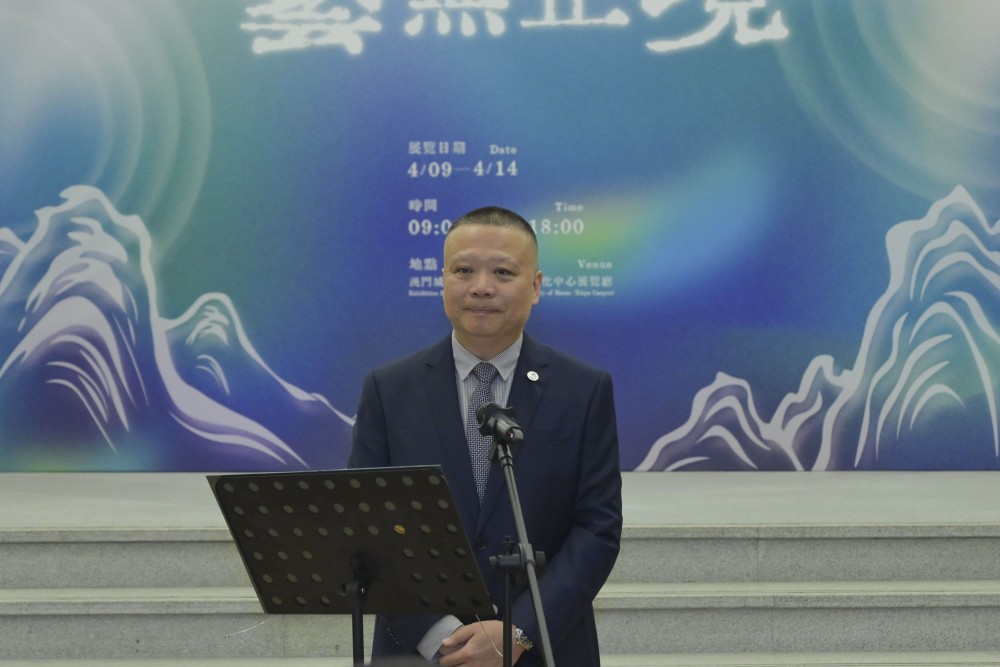 On the morning of 9 April 2026, the exhibition entitled “Art Knows No Bounds” — a presentation of Chinese calligraphy and painting works by Master of Arts graduates of 2026, organised by the Faculty of Innovation and Design of the City University of Macau — was formally inaugurated at the Exhibition Hall of the Cultural Centre. Distinguished guests in attendance included Mr. Chan Iok Wai, Head of the Student Affairs Division of the Education and Youth Development Bureau of the Government of the Macao Special Administrative Region; Professor Zhou Wanlei, Vice Rector of the City University of Macau; Professor Ip Kuai Peng, Vice Rector; Associate Professor Wang Po-Hsun, Executive Associate Dean of the Faculty of Innovation and Design; and Associate Professor Ren Yujie, Programme Coordinator of the Master of Arts Programme, among other guests.